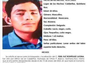 Fidel Isaí Rodríguez Lucena de 22 años fue visto por última vez por sus familiares el pasado 10 de enero ...