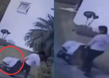 Un video en redes sociales muestra el momento en que una empleada domestica se roba una caja fuerte presuntamente llena ...