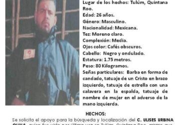 Ulises Urbina Oliva de 26 años fue visto por última vez por sus familiares el pasado 26 de enero de ...