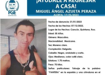 Miguel Ángel Azueta Peraza de 30 años fue visto por última vez por sus familiares el pasado 7 de diciembre ...