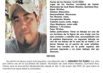 Gerardo Tuz Tejero de 35 años fue visto por última vez por sus familiares el pasado 16 de enero 2023 ...