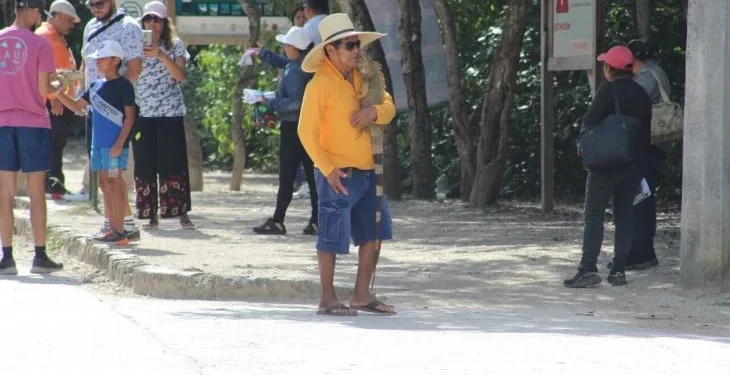 En la entrada principal de la zona arqueológica de Tulum persiste el uso de animales exóticos con el único propósito de que los turistas se tomen foto con ellos a cambio de 200 o 400 pesos, a lo que protectores de animales indican que las autoridades ambientales deben vigilar constantemente para evitar que se dé esta práctica, que está prohibida en Quintana Roo.