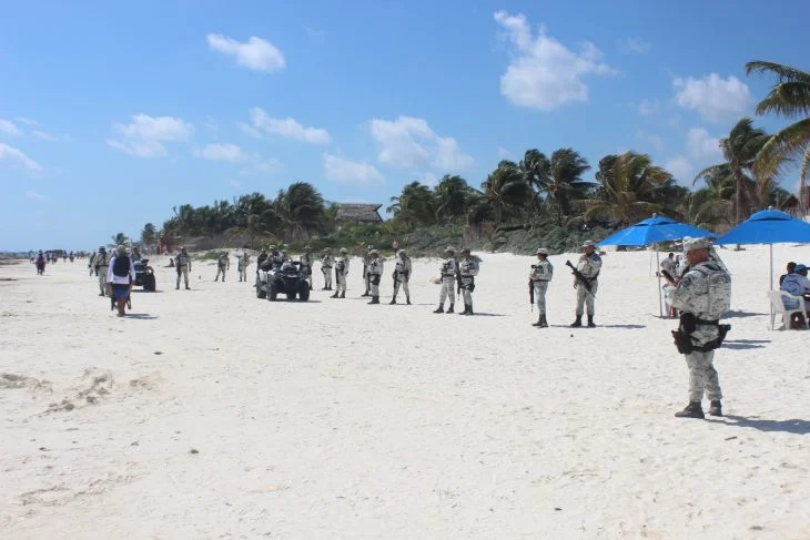 Ante la ineficiencia del gobierno de Marciano Dzul en el municipio de Tulum, Se desplegó más de 50 elementos de la Guardia Nacional en las playas del Parque Nacional Tulum para realizar recorridos de seguridad, como parte de un operativo que busca mantener seguros a los visitantes y vendedores que se encuentran en esa área turística.