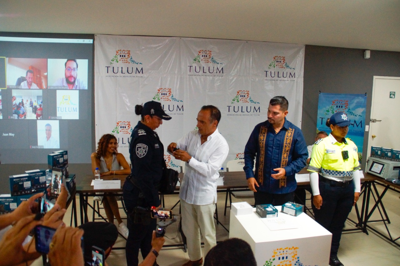 A través de una reunión semipresencial donde la mitad de los integrantes que son parte de este magno proyecto de seguridad para el noveno municipio estuvo presente, se dio a conocer que la Asociación de Hoteles de Tulum que dirige David Ortiz Mena hizo entrega de 80 “body cams” a la Dirección General de Seguridad Pública y Protección Ciudadana, equipos que ayudarán a mejorar la actuación de los elementos policiacos, reforzando la seguridad del municipio, en favor de la ciudadanía y los visitantes, con el fin de coadyuvar con las autoridades del Ayuntamiento de Tulum y la AHT.