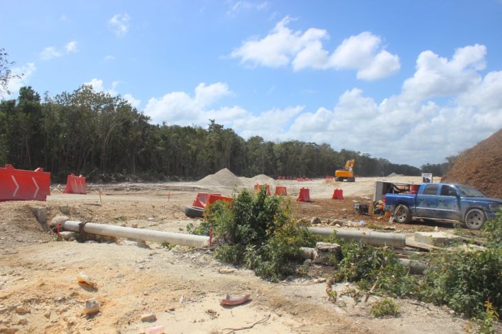 Frente al desmonte de derecho de vía donde pasará el tren también hay ya un avance importante del tramo 6 norte, que conectaría a Tulum con la subestación que se construirá en el Aeropuerto Internacional Felipe Carrillo Puerto.