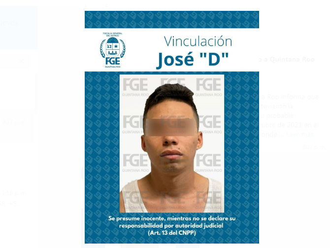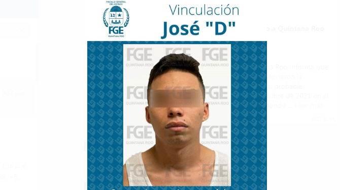 La Fiscalía General del Estado de Quintana Roo informa que Fiscales Especializados en Investigación de homicidios obtuvieron la vinculación a proceso para José “D” alias “El Bolillo”, por su probable participación en los hechos ocurridos el pasado 20 de octubre de 2021 en el restaurante “La Malquerida” del municipio de Tulum, en donde dos mujeres de origen extranjero perdieron la vida y tres personas más resultaron lesionadas.