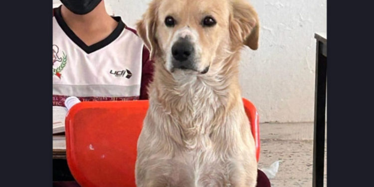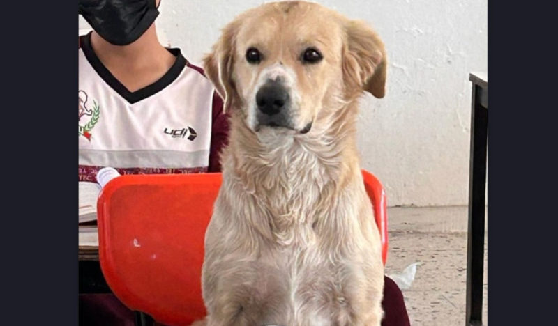 Como buen compañero de su humano, lo siguió hasta la escuela, y cuando la profesora Lucelly de la secundaria 53, en Durango, se percató de su presencia, lejos de molestarle, le causó tremenda empatía verlo sentado en su pupitre, muy atento, por lo que permitió que se quedará en el salón, además, para que no corriera ningún riesgo al regresar solito a casa.