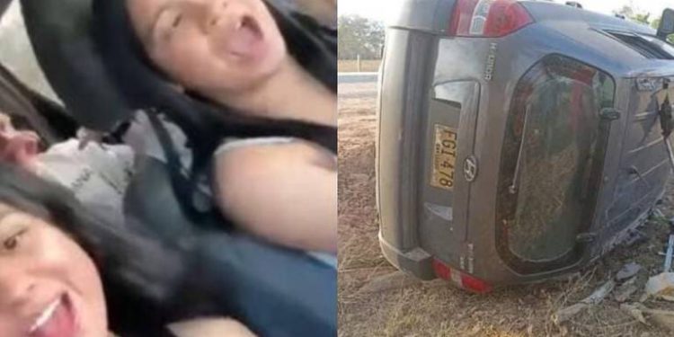La grabación continúa a pesar de la volcadura del vehículo, en este se logra escuchar cómo la conductora empieza a gritar y se le escucha decir: “el carro de mi papá, el carro de mi papá”, a lo que los demás tripulantes le piden guardar la calma e intentan tranquilizarla.