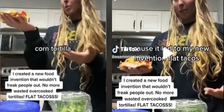 Una joven tiktoker fue tundida en redes sociales al tratar de ser muy innovadora e inventar el “taco plano”, de inmediato los usuarios en redes sociales se le fueron con todo “esa es una tostada”, “ no estás inventando nada”, “con los tacos no”, “no puedo con esta gente” fueron solo unos de los comentarios.