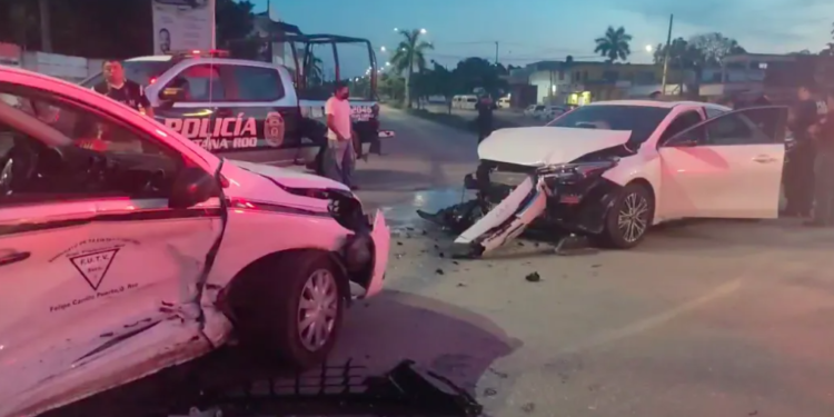 Los hechos ocurrieron este jueves a las 6:30 de la mañana sobre la avenida Lázaro Cárdenas y la calle 66 de la colonia Centro, cuando un maestro y un taxista se vieron involucrados en un accidente vial. Elementos de Tránsito Municipal hicieron acto de presencia en el lugar del siniestro, donde se encargaron de realizar los trabajos periciales y cerraron parte de la avenida para evitar otro percance.